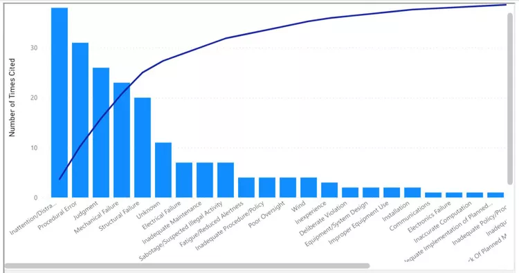 Biểu đồ Pareto được sử dụng để phân tích sự cố tràn dầu ở Mỹ