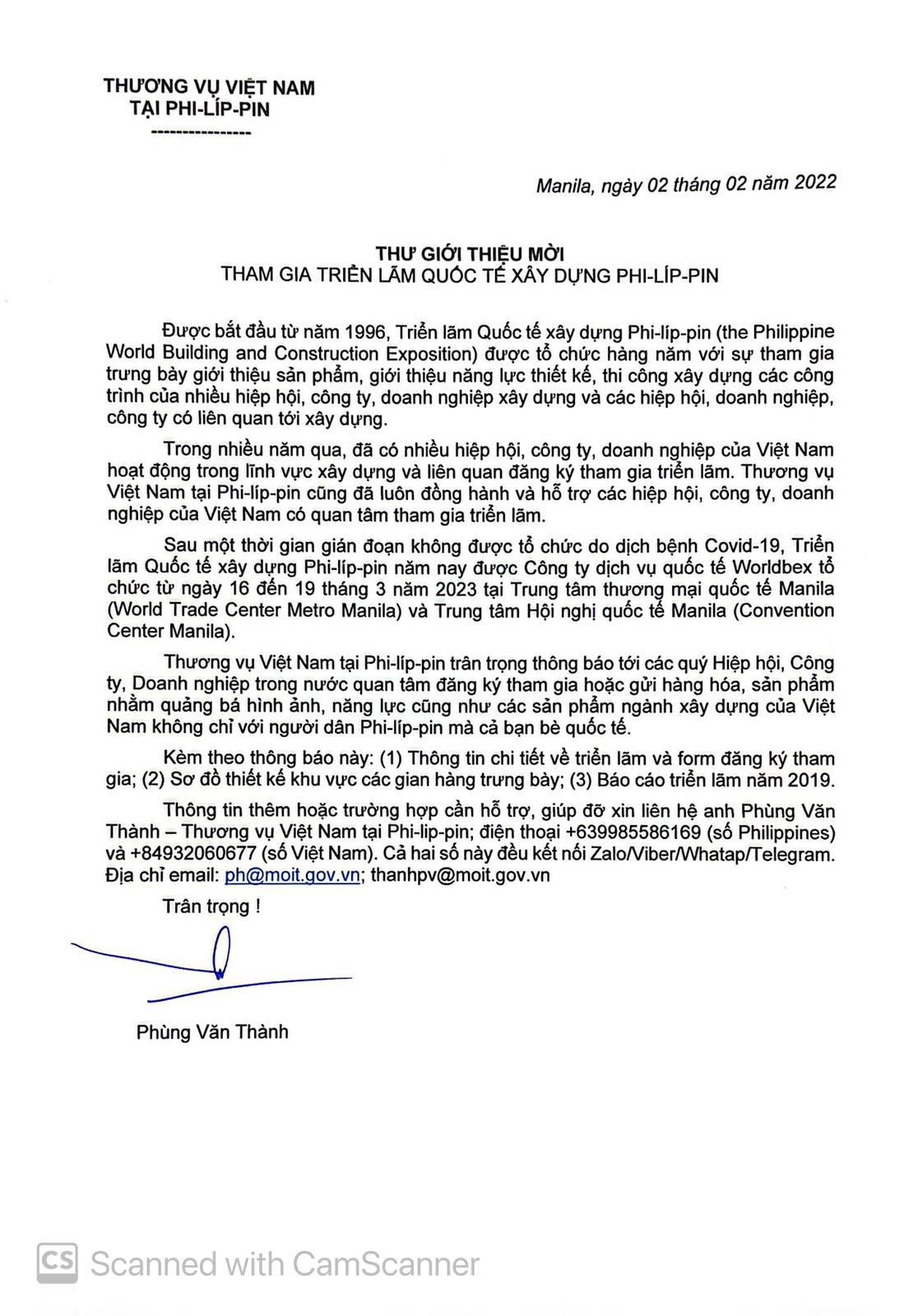 Thương vụ Việt Nam tại Philippin gửi tới quý anh chị em hội viên cơ hội xúc tiến thương mại thông qua việc tham gia triển lãm ngành xây dựng ở Philippin