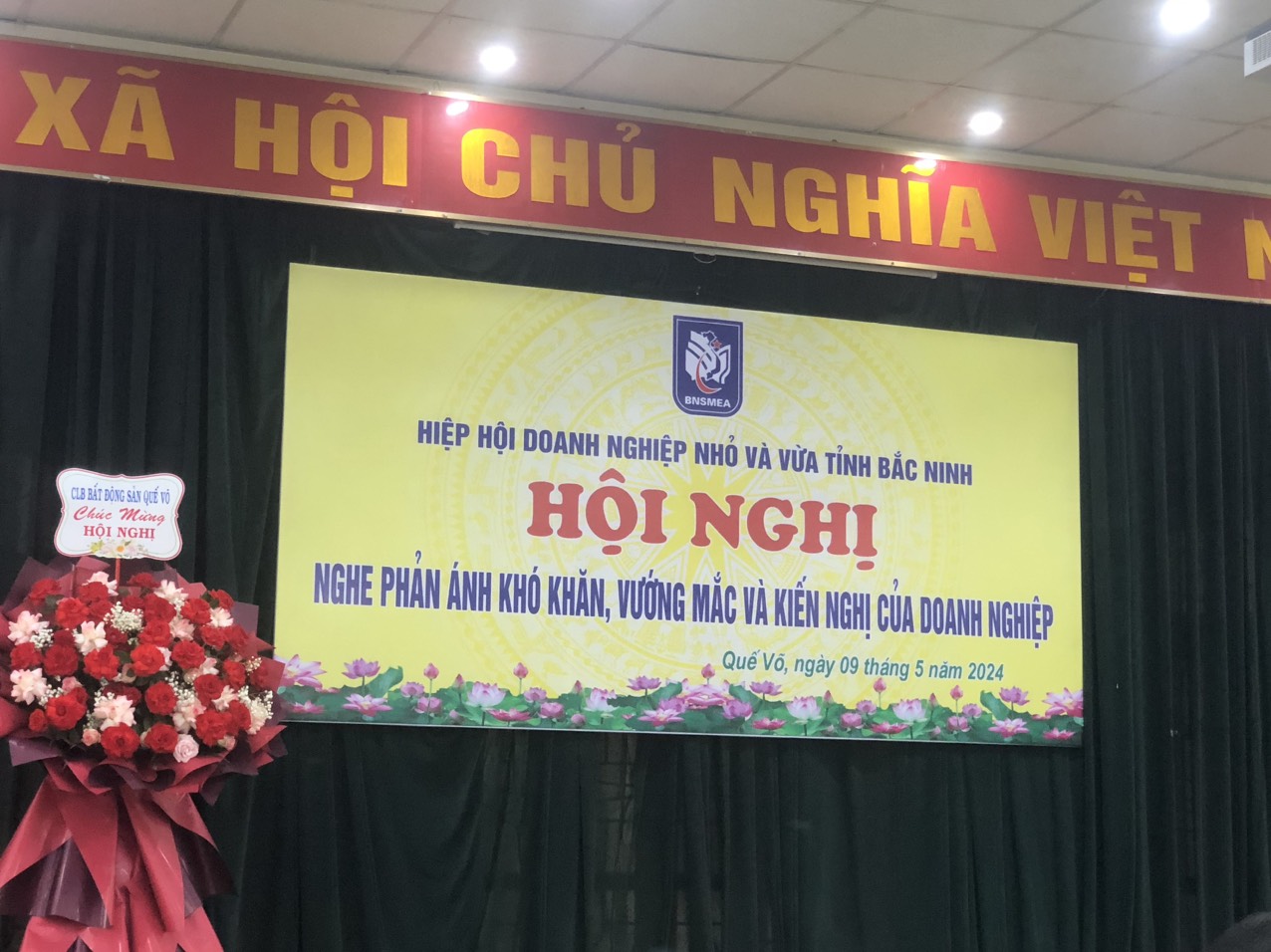 2h30 chiều ngày 9/5, tại UBND Huyện Quế Võ, ông Nguyễn Thế Hồng chủ tịch Hiệp Hội Doanh nghiệp nhỏ và vừa Tỉnh Bắc Ninh đọc diễn văn khai mạc hội nghị