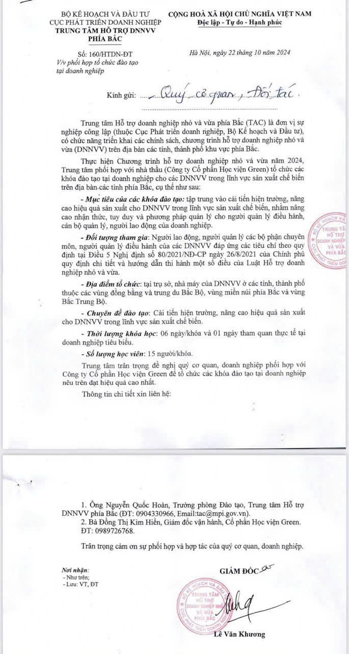 Nhằm hỗ trợ doanh nghiệp nâng cao năng lực sản xuất, thương mại. CLB OCOP Toàn Quốc phối hợp thực hiện trương trình với Trung tâm hỗ trợ DNNVV - Cục phát triển doanh nghiệp xây dựng chương trình đào tạo tại cơ sở.