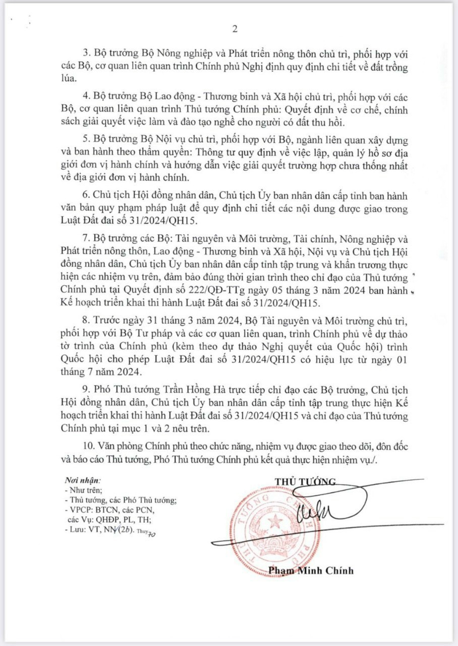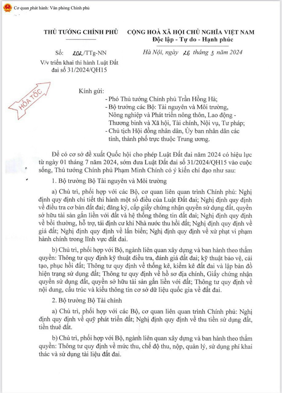 Văn bản "HOẢ TỐC" - Triển khai thi hành Luật Đất Đai số 31/2024/QH15